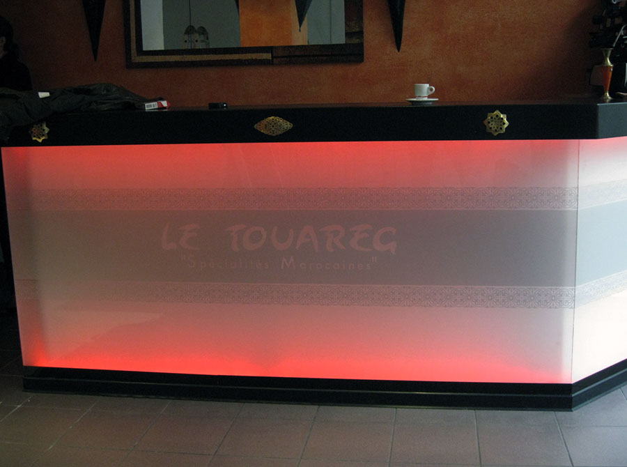 Plexi transparent 8mm + vinyle dépoli ajouré