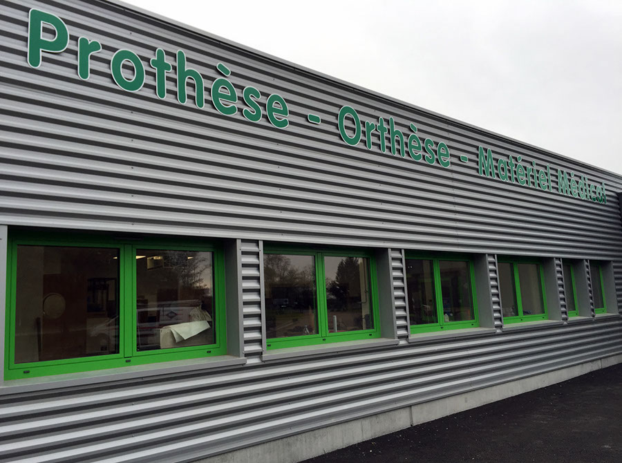 Lettres alucobond posées sur bardage