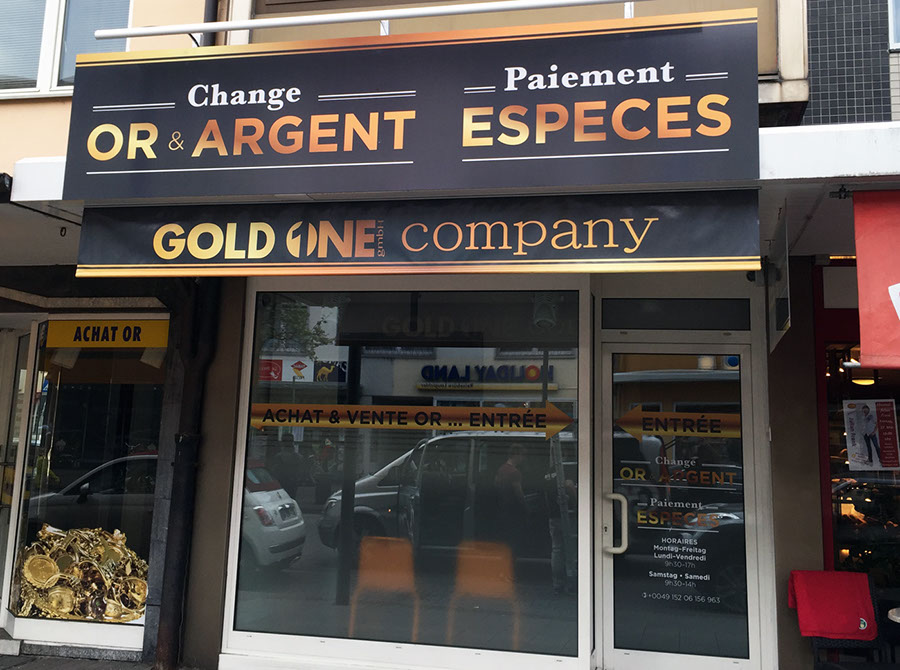 Lettres alucobond + retro-éclairage diodes, posées sur lisse