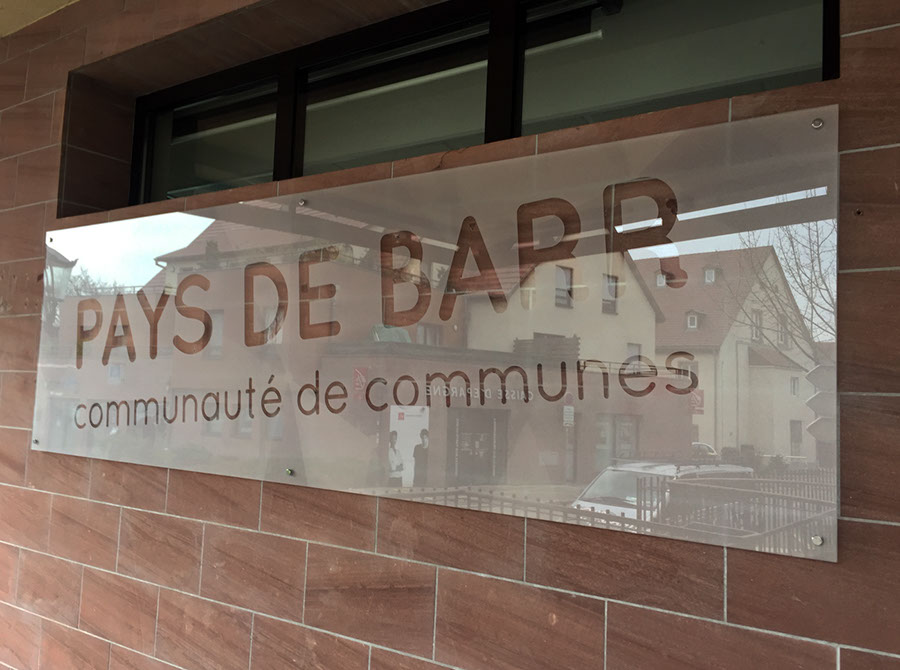Lettres en PVC 10mm, posées sur entretoises