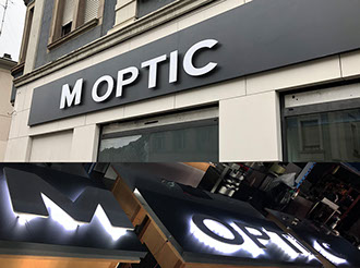Enseigne lettres découpé lumineux ou non, caisson lumineux en drapeau et applique,